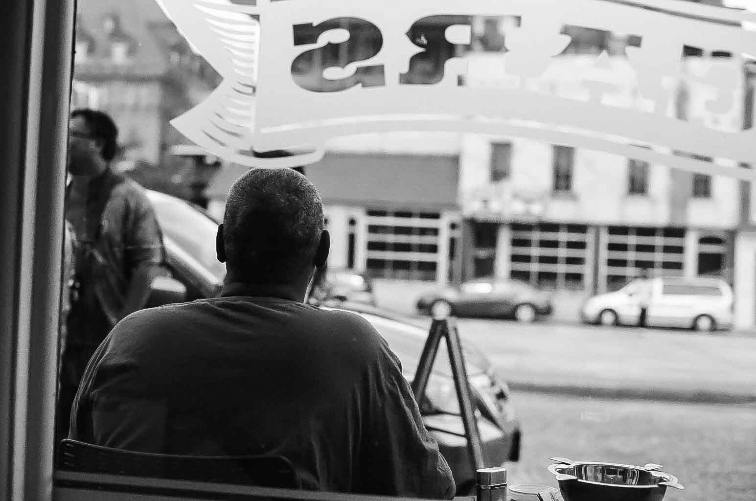 This is one of those photo walks that I set up with a guy that was offering some 200 rolls of expired film to shoot. Walking in the bottom in Richmond was where we decided to go to. The guy got a great deal a simple $5 for the 200 rolls including 35mm, 120mm and some sheet film. I grabbed some black and white film, Kodak BW400cn Film, since if it was expired maybe it wouldn’t look to bad. We stopped at the Cigar Factory there were the owner was sitting outside enjoying one of their many cigars. He was friendly and offered to step inside the take some shots. Today I used a Nikon FM2n with a 50mm 1.4 lens. The owner sitting outside…